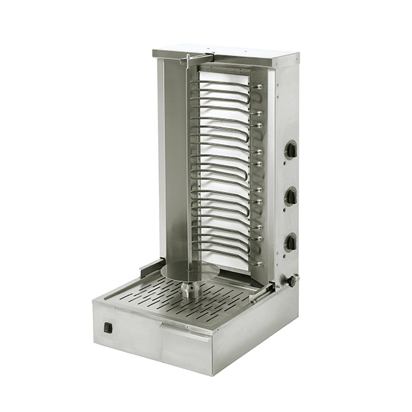 Para asar la pieza de carne de forma homogénea, el espaldar y la fuente de calor son móbiles y regulables con relación a la pieza de carne denominada zanahoria.