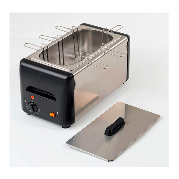 Este cocedor funciona como un baño maría: con resistencia en el fondo, una placa de aluminio transfiere el calor sobre toda la base del depósito y el limitador de temperatura permite una cocción con absoluta seguridad. Mantenimiento simple, gracias a su depósito en acero inoxidable.