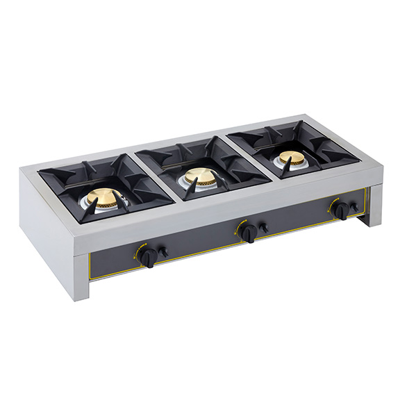 Equipamiento: 1 a 3 quemadores, 1 a 3 mandos de regulación con una posición de ralentizo, termopar de seguridad. Entregado sin wok.