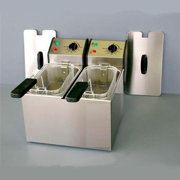 Equipamiento: termostato de regulación a bulbo inox muy preciso, termostato inox doble seguridad en caso de sobrecalentamiento ó de insuficiencia de aceite, micro interruptor de contacto, grifo, cestas con empuñaduras termo-resistentes, pilotos de control. Mandos independientes para el modelo doble FD 80 DR