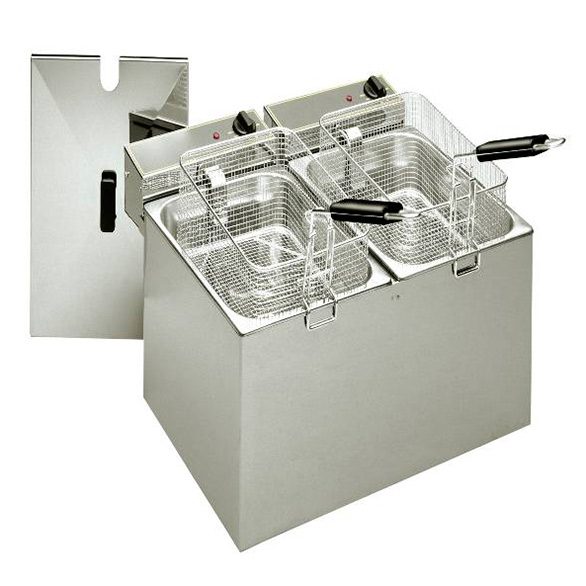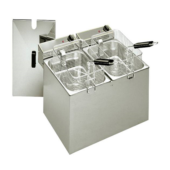 Una serie de freidoras de sobre mesa con doble cubeta y mandos independientes para doblar el rendimiento en período de alta demanda o destinar una cesta a productos muy específicos. Con un volumen de 2x5 hasta 2x12 l de aceite, que permiten frituras de 20 a 44 kg/hora.