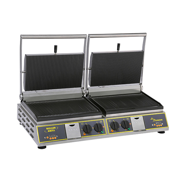 Este asador de contacto double PREMIUM presenta las mismas características que el modelo simple con mandos independientes.