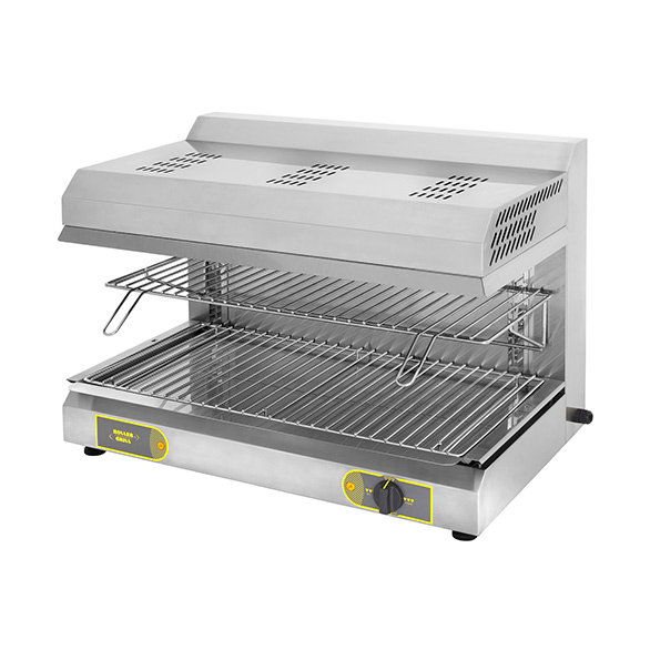 SGM 800: Modelo gas fuerte potencia a doble quemadores. Entregada en gas butano/propano con un juego de inyectores para GN. Equipado con une piloto, quemadores infrarrojos con termopares de seguridad, botón de regulación. Anchura del quemador : 600mm.