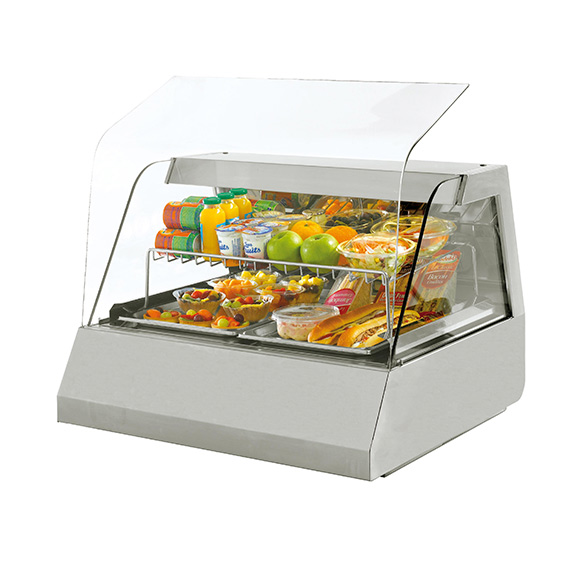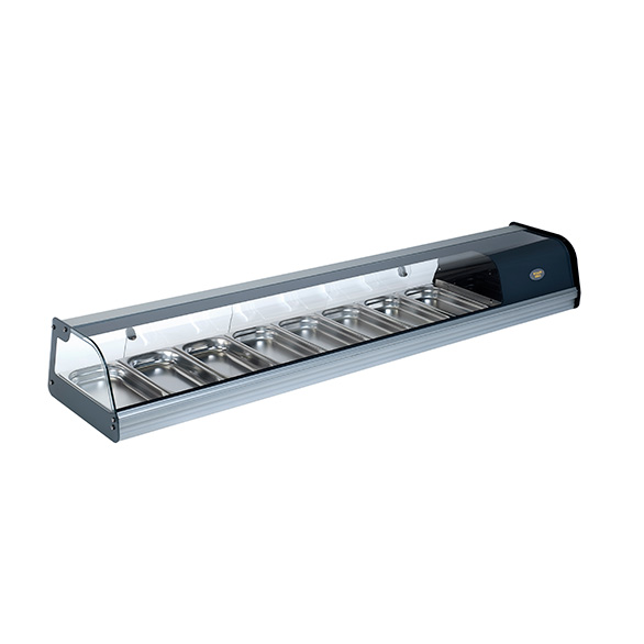 Vitrinas refrigeradas de sobremesa espacialmente adaptadas a la exposición de entremés frios, carnes, pescados, mariscos, verduras, etc. a temperatura perfectamente homogénea de +1°C/+5°C en bandejas GN.