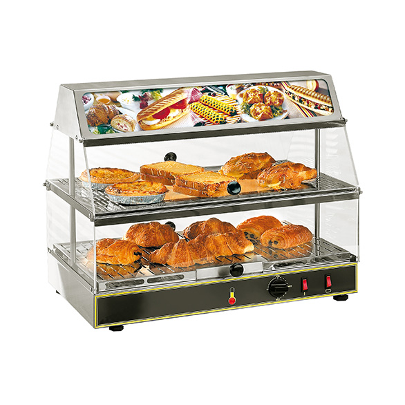 Específicamente estudiadas para snacks y puntos calientes, bares y cafeterías, salones de té. Estas vitrinas calientes totalmente panorámicas para mostrador, incitan a la compra de quiches, pizzas, croissants, vienesas, bocadillos calientes, manteniéndolos a una temperatura constante y con una adecuada esponjosidad.