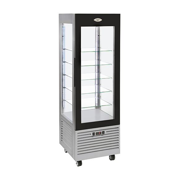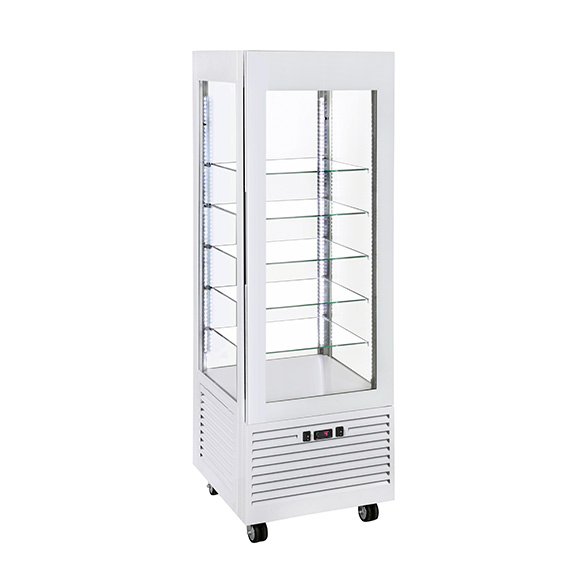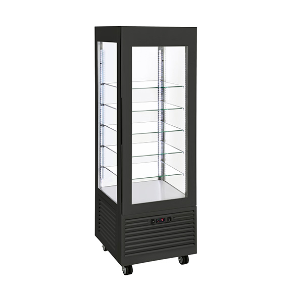 RDN 60: vitrina de frío negativo -5 ºC a -20 ºC, triple cristal, en versiones fija (510 x 510 mm) y giratoria (Ø 37,5 cm).
